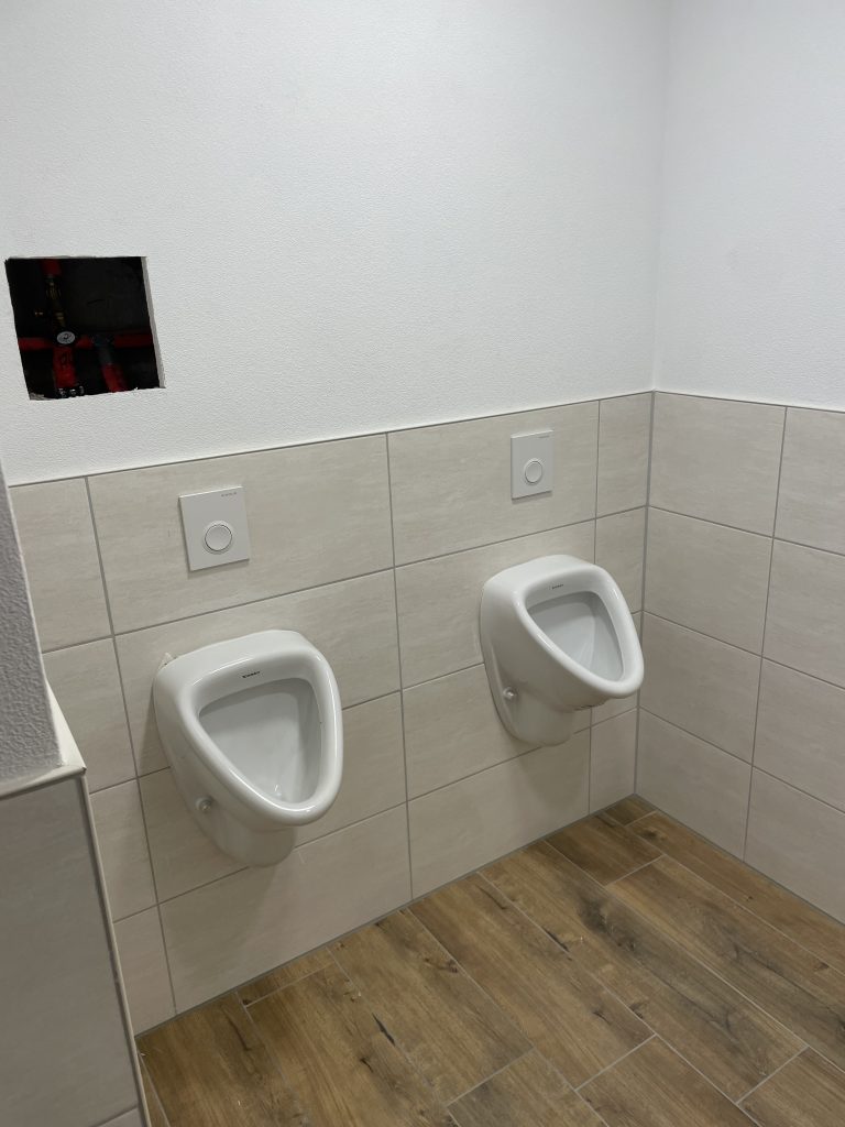 Das Ergebnis kann sich sehen lassen. Der sanitäre Bereich kann sich bereits sehen lassen. Mit Einbau der Türen kann man schon erkennen was für eine Verwandlung hier stattgefunden hat.
